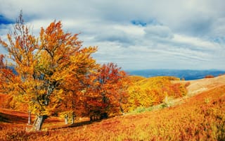 Фото: осень, пейзаж, природа, деревья, горы, небо, цвета